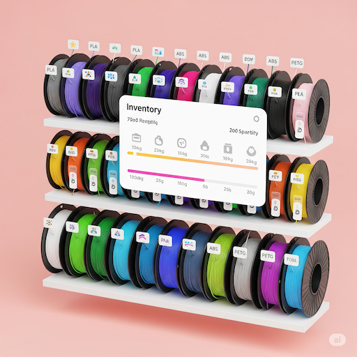 Smart inventory management for your 3D filament spools — track type, color, weight, and weight. Stay organized and avoid waste.