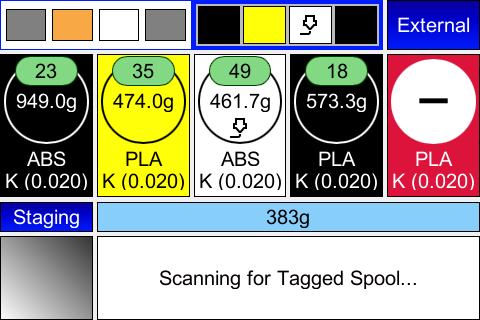 Note: On dual-extruder printers (H2D, H2C), the external spool will appear as "Ext Right" or "Ext Left." To change which extruder’s external feed is displayed, tap the "Ext" label.